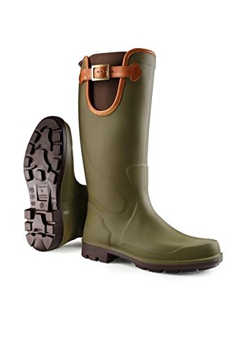 A high performing boot providing an outstanding level of comfort and durability warm in winter and cool in summer. Smart gusset with water repellent elastic and leather strap for adjustable fit with premium insoles and quality leather finish. Green with black sole.